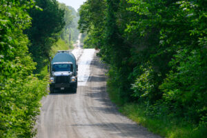 The Recycled Asphalt Pavement (RAP) generated during the Cold Milling operation is loaded onto haul trucks via the conveyor system and transported off site. The RAP can then be further recycled through Central Cold Mix and Hot Mix Plants or used to correct profile deficiencies by placing the material on existing granular or bituminous surfaces.