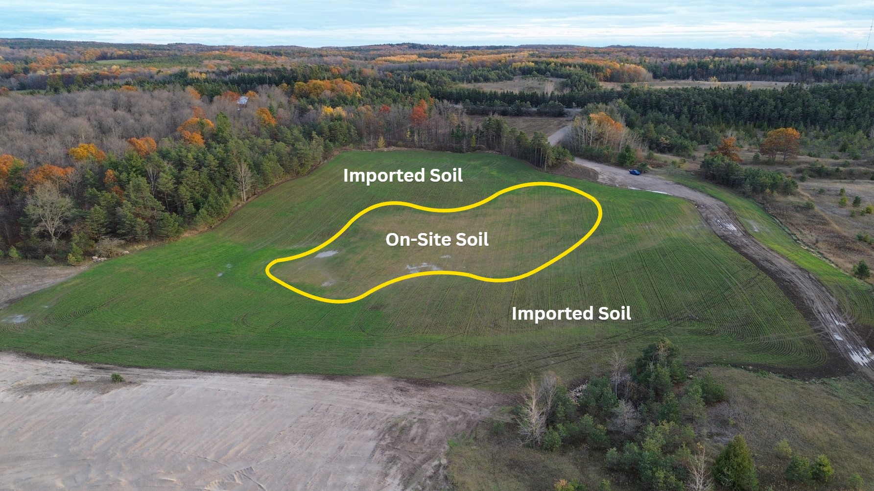 As is typical in the Uxbridge area of the Oak Ridges Moraine, Boyington Pit 1 had limited on-site topsoil available for rehabilitation. The existing topsoil that was on-site had been stored in long-term stockpiles, impacting its organic matter and fertility characteristics.